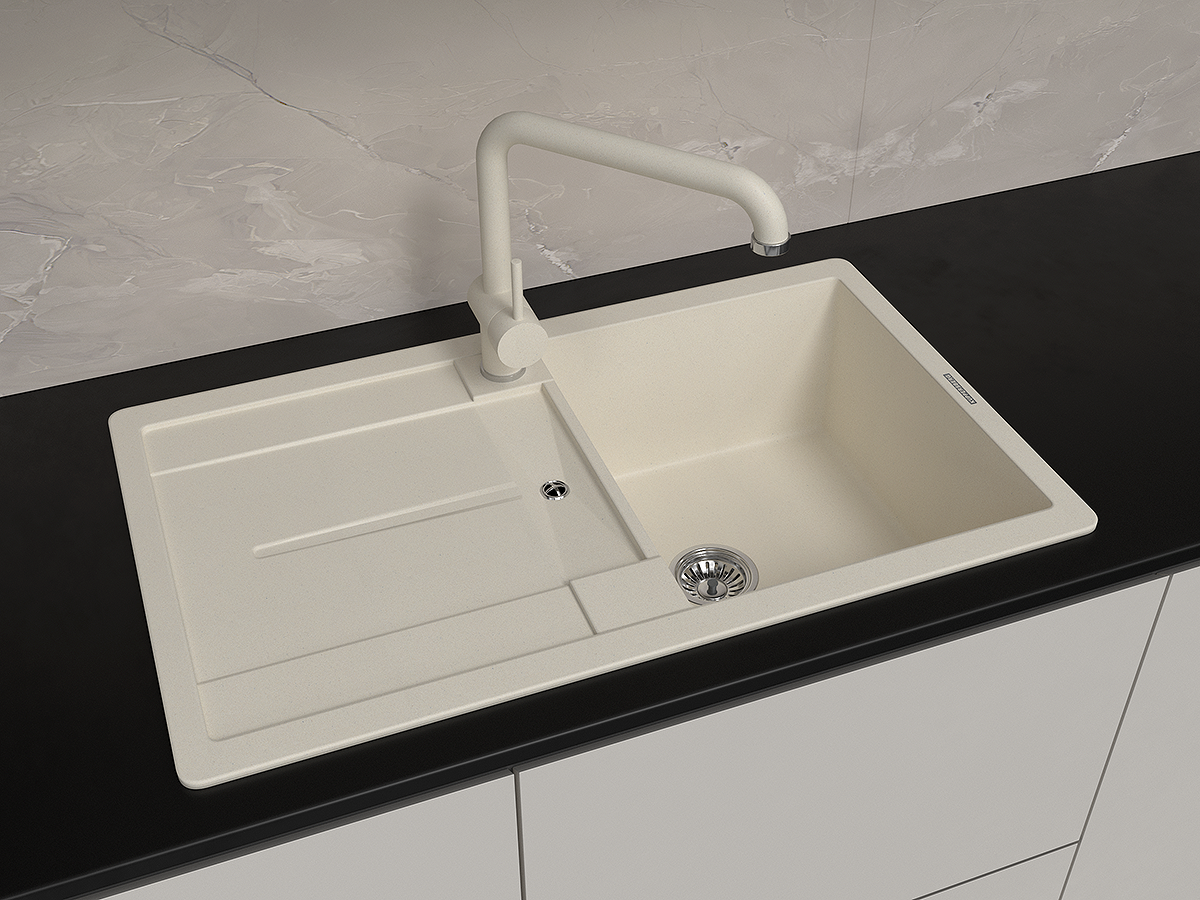 Кухонная мойка PRATA 1B1D WHITE ALABASTER