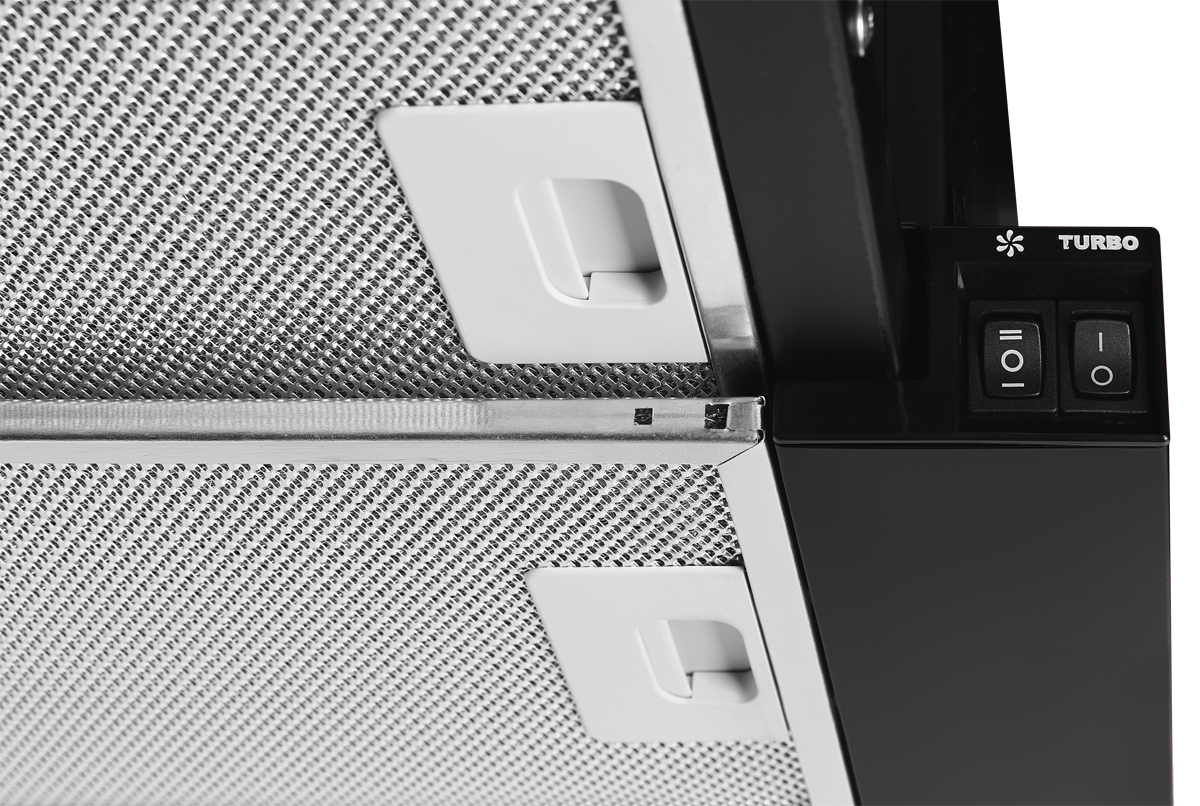 Встраиваемая кухонная вытяжка SLIMLUX IV 50 B черного цвета обеспечит неплохую производительность в помещении небольшой площадью. С таким прибором можно запустить функцию стабильной и качественной рециркуляции воздуха. Этот элегантный и в то же время функциональный прибор с выдвижным механизмом способен достаточно быстро нейтрализовать все неприятные ароматы, вредные испарения, дым и копоть, нередко образующиеся при пригорании еды.