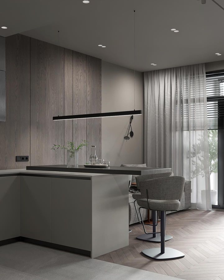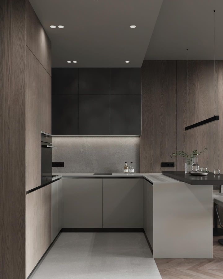 Геометричные формы этой модели сопровождает минимальное число деталей. Глухие фасады могут закрывать сразу несколько внутренних ящиков. Фактурные фасады, холодный металл и сдержанные цвета — стиль минимализм воплощает в себе самые современные тенденции в дизайне кухонь.