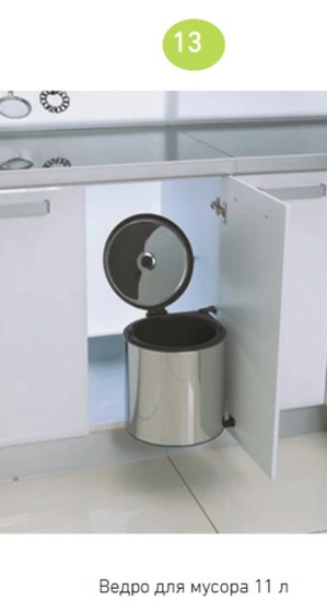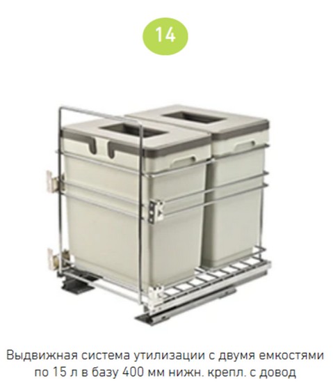 • Выдвижная система утилизации с двумя емкостями по 15 л в базу 400 мм нижн. крепл. с довод