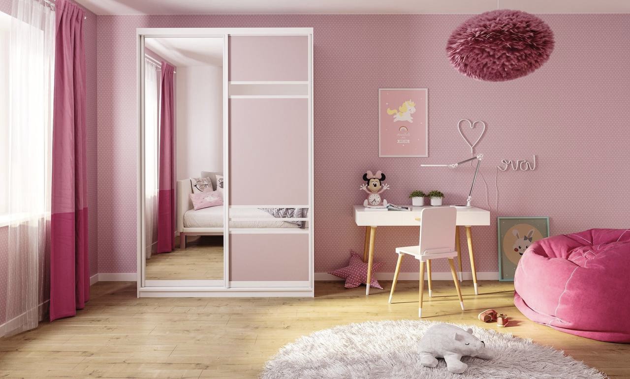 Двери купе и лаконичная отделка фасадов создают прогрессивный дизайн. Подойдет тем, кто любит компактную и изящную мебель. Навесные двери скрывают раздвижной механизм от глаз. Они надежно удерживаются в направляющих и не соскакивают