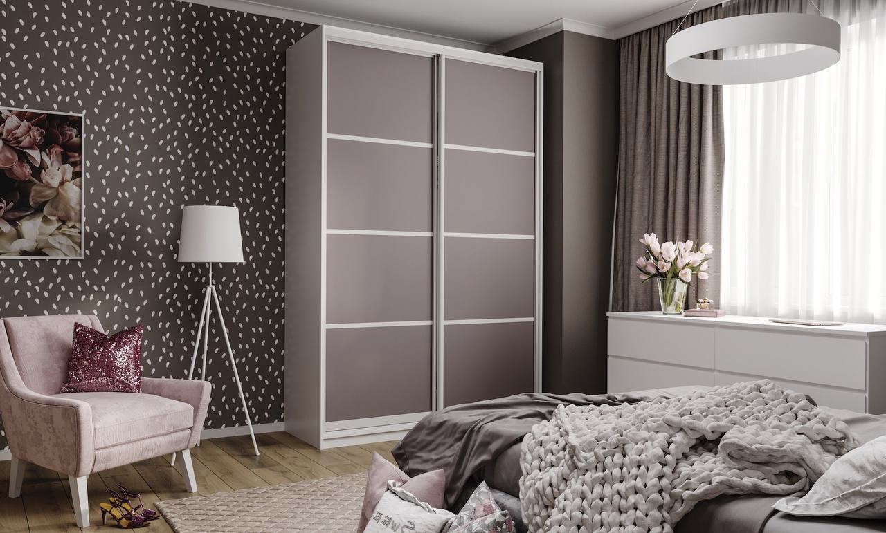 Двухдверный шкаф-купе. Вместительная и эффектная модель, созданная для интерьера в современном стиле. Интересный дизайн дверей купе,матовые фасады с разделителем.В шкафу можно компактно разместить гардероб целой семьи, его конструкция хорошо продумана и качественно реализована. В отделении для плечиков без риска помяться найдут свое место верхняя одежда, брюки, юбки, костюмы. На полках удобно разложить трикотаж и текстиль.
