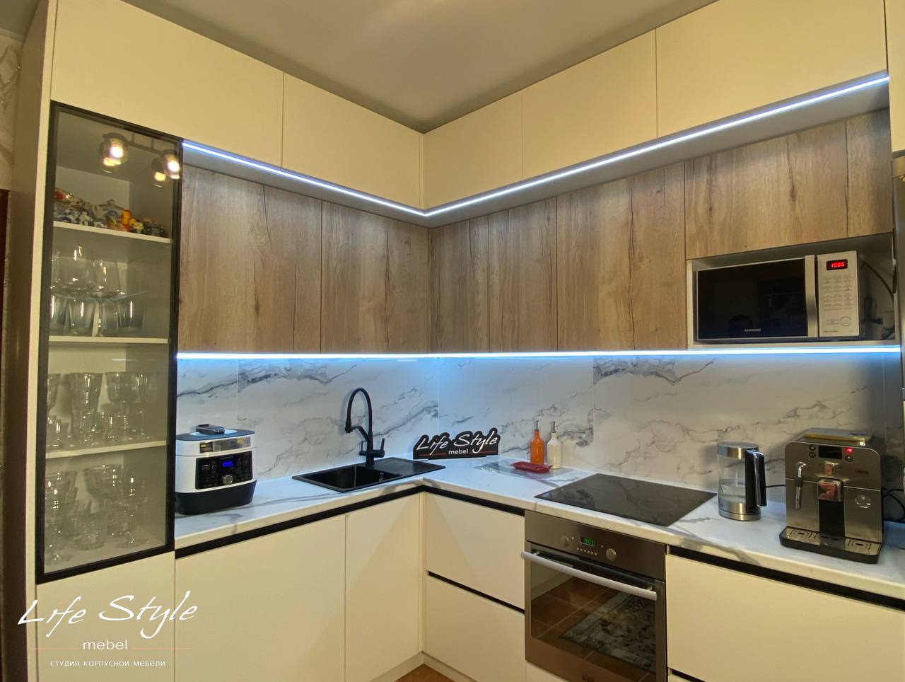 Для фасадов кухонных шкафов можно выбрать древесину с текстурой, чтобы придать пространству больше характера. Также можно использовать фасады с стеклом , чтобы придать кухне изящности.