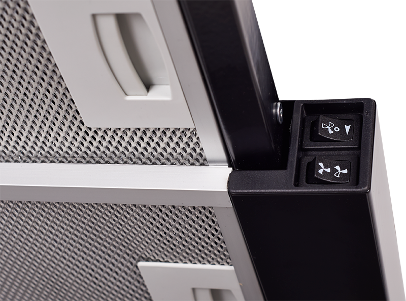 Компактная встраиваемая кухонная вытяжка SLIMLUX II 90 SG черного цвета с выдвижным механизмом – нужный прибор, который способен эффективно устранить гарь, опасные для вдыхания химические элементы, дымовую завесу и копоть, заполняющие помещение при случайном пригорании еды. Особое удобство работе агрегата придает механическое управление на кнопках.