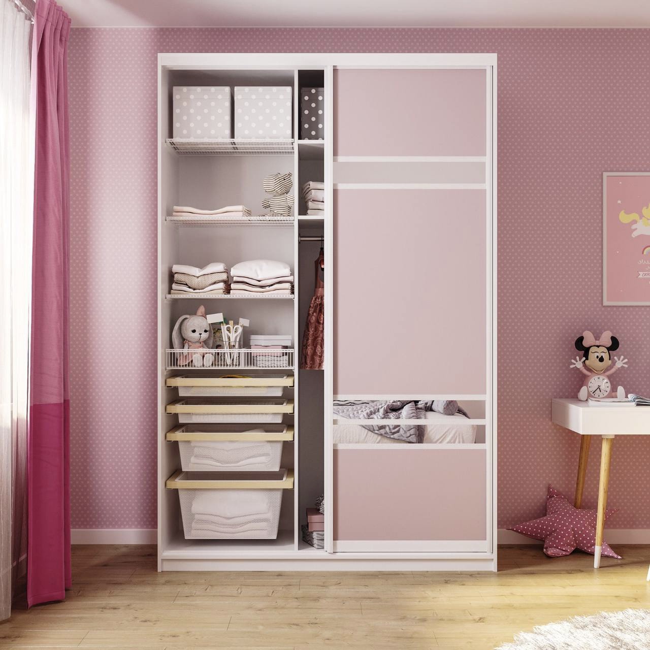 Двери купе и лаконичная отделка фасадов создают прогрессивный дизайн. Подойдет тем, кто любит компактную и изящную мебель. Навесные двери скрывают раздвижной механизм от глаз. Они надежно удерживаются в направляющих и не соскакивают