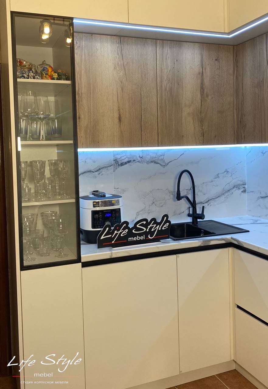 Для фасадов кухонных шкафов можно выбрать древесину с текстурой, чтобы придать пространству больше характера. Также можно использовать фасады с стеклом , чтобы придать кухне изящности.