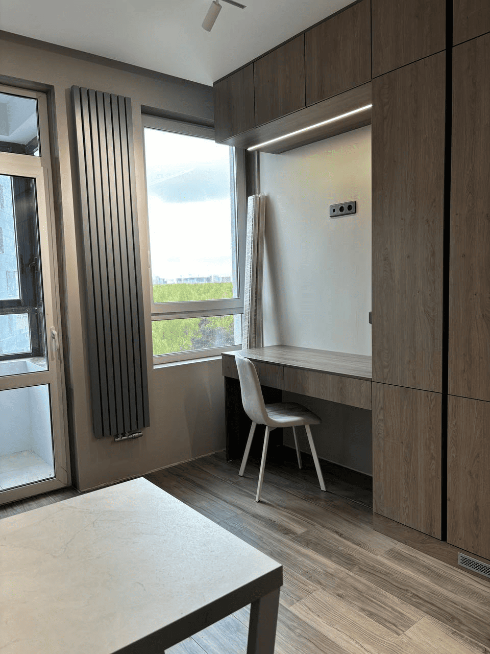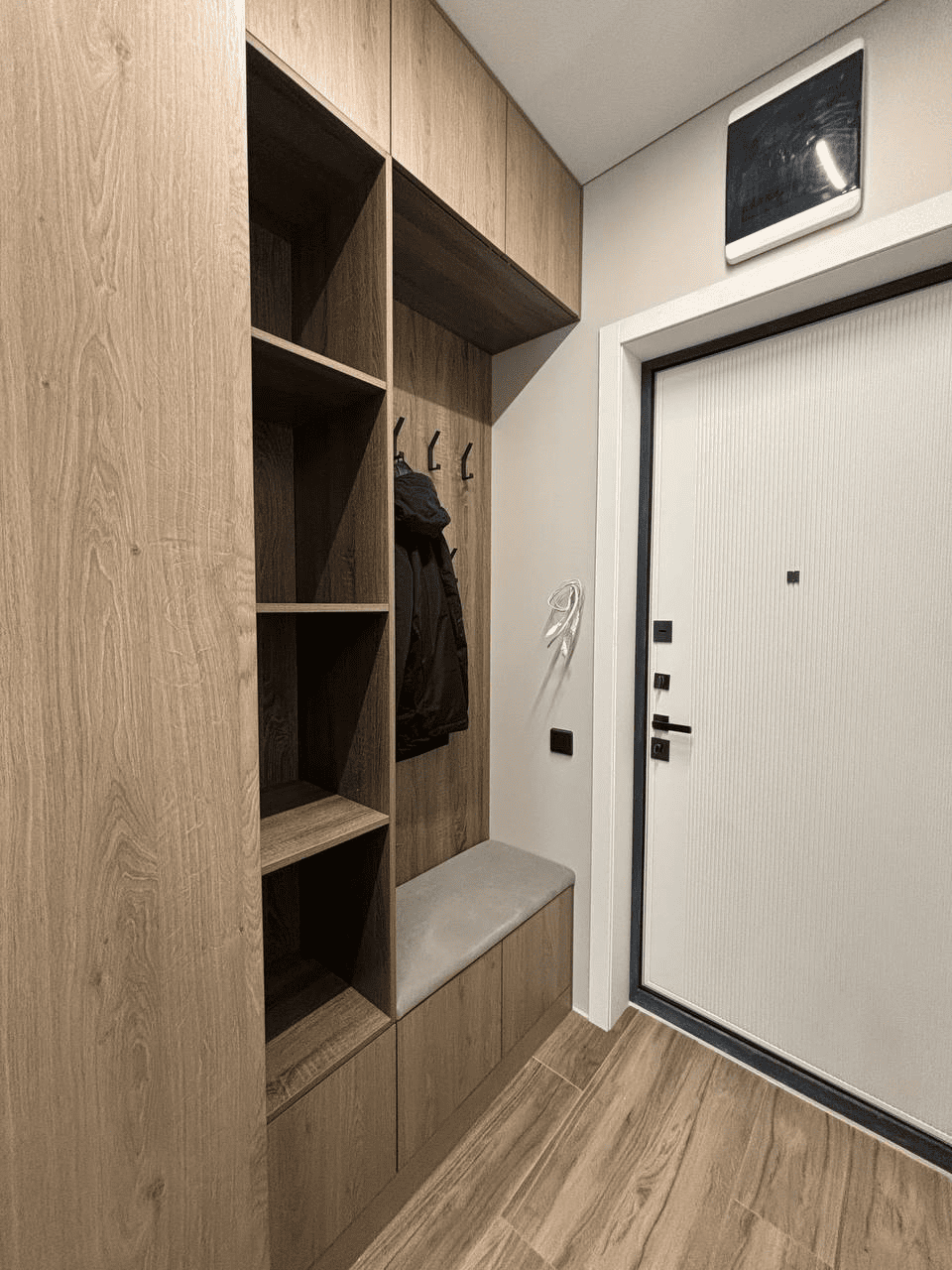 - Встроенный гардероб — максимум хранения без ощущения перегруженности.